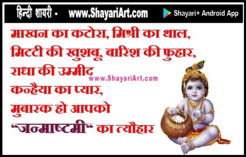 माखन का कटोरा, मिश्री का थाल,मिटटी की खुशबू, बारिश की फुहार,राधा की उम्मीद कन्हैया का प्यार,मुबारक हो आपको “जन्माष्टमी“ का त्यौहार