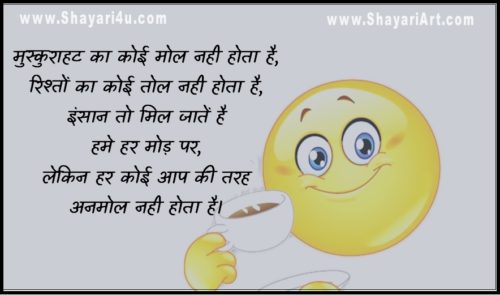 ♥ Good Morning Smile Shayari ♥ मुस्कुराहट का कोई मोल नही होता है, रिश्तों का कोई तोल नही होता है, इंसान तो मिल जातें है हमे हर मोड़ पर, लेकिन हर कोई आप की तरह अनमोल नही होता है।