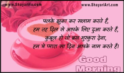 ♥ Good Morning Yaad Shayari ♥ पलके झुका कर सलाम करते हैं, हम तह दिल से आपके लिए दुआ करते हैं, कुबूल हो तो बस मुस्कुरा देना, हम ये प्यारा सा दिन आपके नाम करते हैं।