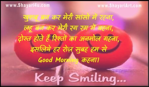 Roj Good Morning Kehna Shayari खुशबू बन कर मेरी सांसो में रहना, लहू बन कर मेरी रग रग में बहना, दोस्त होते हैं रिश्तों का अनमोल गहना, इसलिये हर रोज़ सुबह हम से Good Morning कहना।