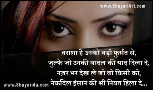 तराशा है उनको बड़ी फुर्सत से,जुल्फे जो उनकी बादल की याद दिला दे,नज़र भर देख ले जो वोह किसी को,नेकदिल इंसान की भी नियत हिला दे…