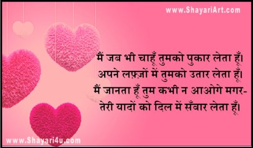 मैं जब भी चाहूँ तुमको पुकार लेता हूँ।अपने लफ़्ज़ों में तुमको उतार लेता हूँ।मैं जानता हूँ तुम कभी न आओगे मगर-तेरी यादों को दिल में सँवार लेता हूँ।