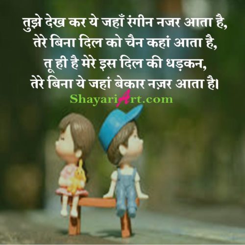 तुझे देख कर ये जहाँ रंगीन नजर आता है,तेरे बिना दिल को चैन कहां आता है,तू ही है मेरे इस दिल की धड़कन,तेरे बिना ये जहां बेकार नज़र आता है।