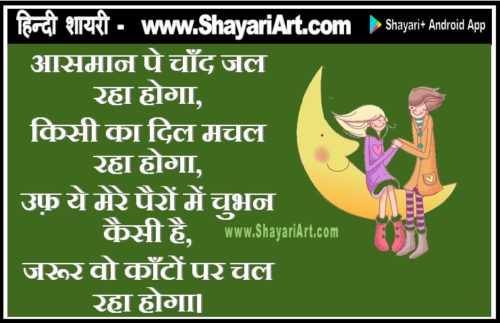 आसमान पे चाँद जल रहा होगा, किसी का दिल मचल रहा होगा, उफ़ ये मेरे पैरों में चुभन कैसी है, जरूर वो काँटों पर चल रहा होगा।