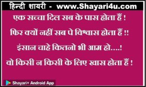 एक सच्चा दिल सब के पास होता हैं !फिर क्यों नहीं सब पे विश्वास होता हैं !!इंसान चाहे कितनो भी आम हो….!वो किसी न किसी के लिए जरुर खास होता हैं !