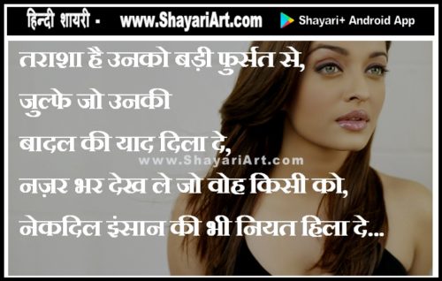तराशा है उनको बड़ी फुर्सत से,जुल्फे जो उनकी बादल की याद दिला दे,नज़र भर देख ले जो वोह किसी को,नेकदिल इंसान की भी नियत हिला दे…